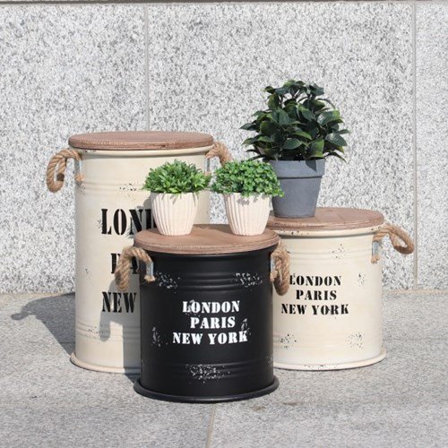 빈티지 드럼통 스툴_실버